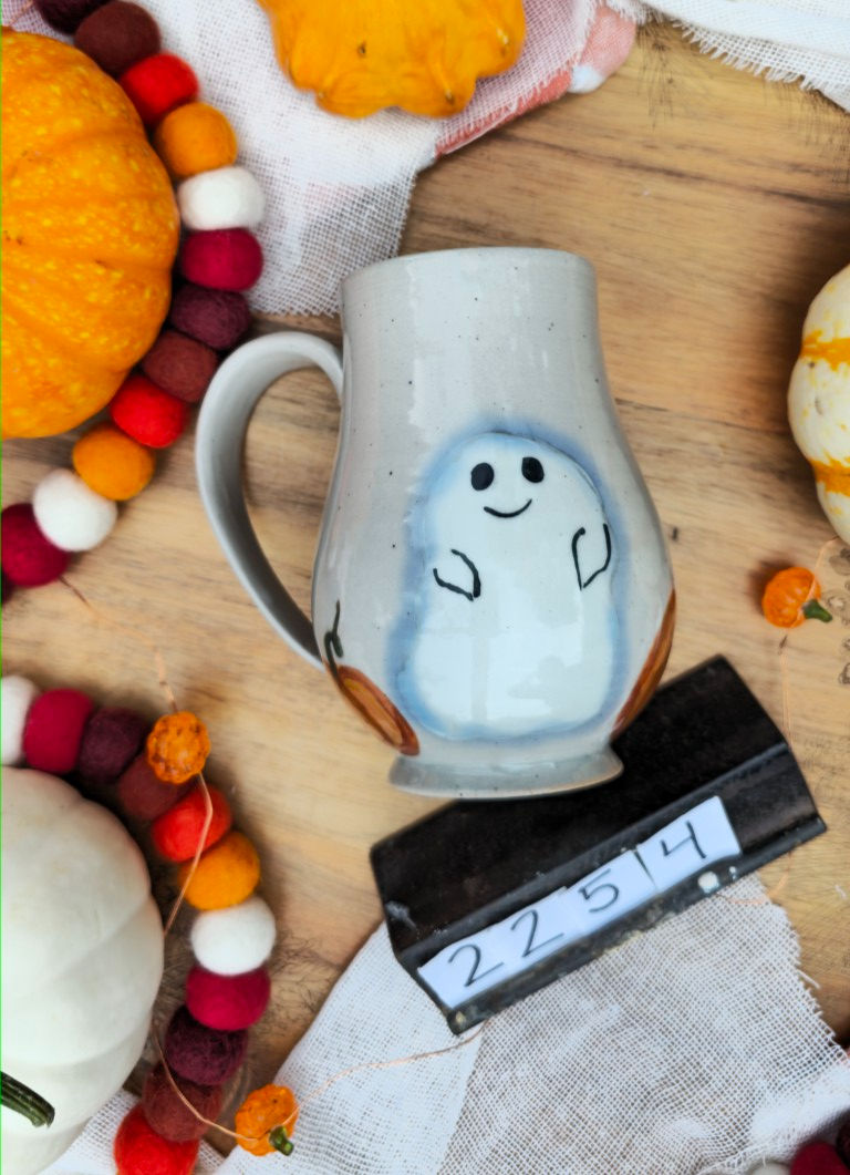 Ghost with Bindle, Pumpkin and Bat Mug #2257