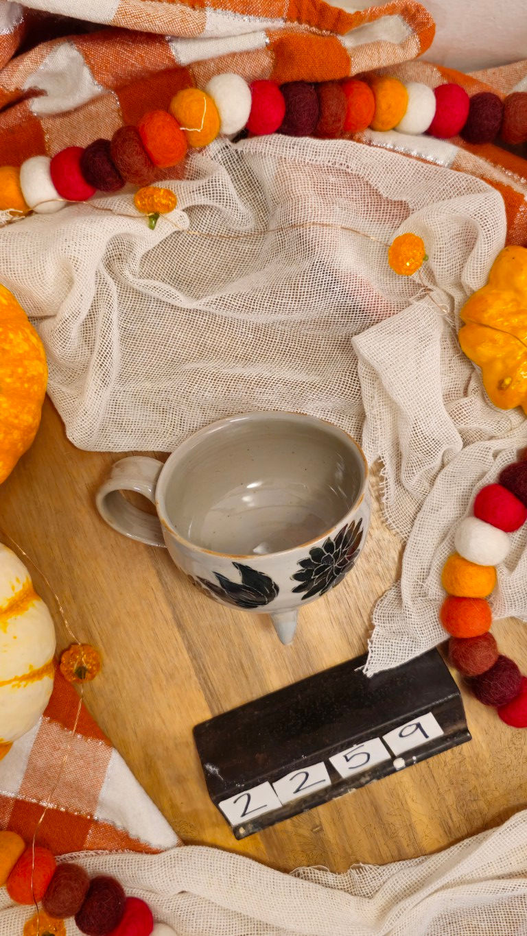 Green Celadon Cauldron Mug with Orange Painted Flowers #2252