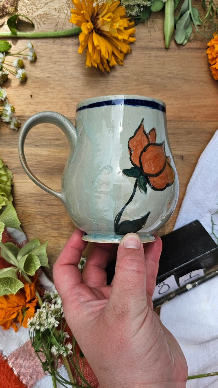 Light Orange Pumpkin Mug with Vine handle and Black interior #2219